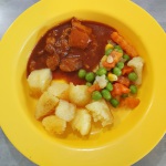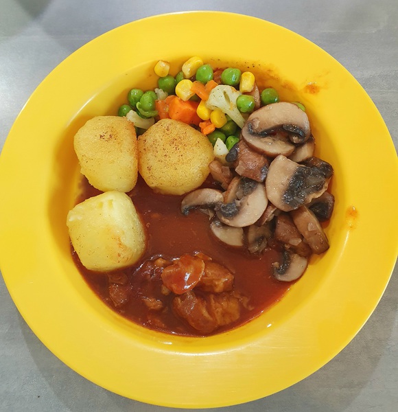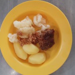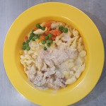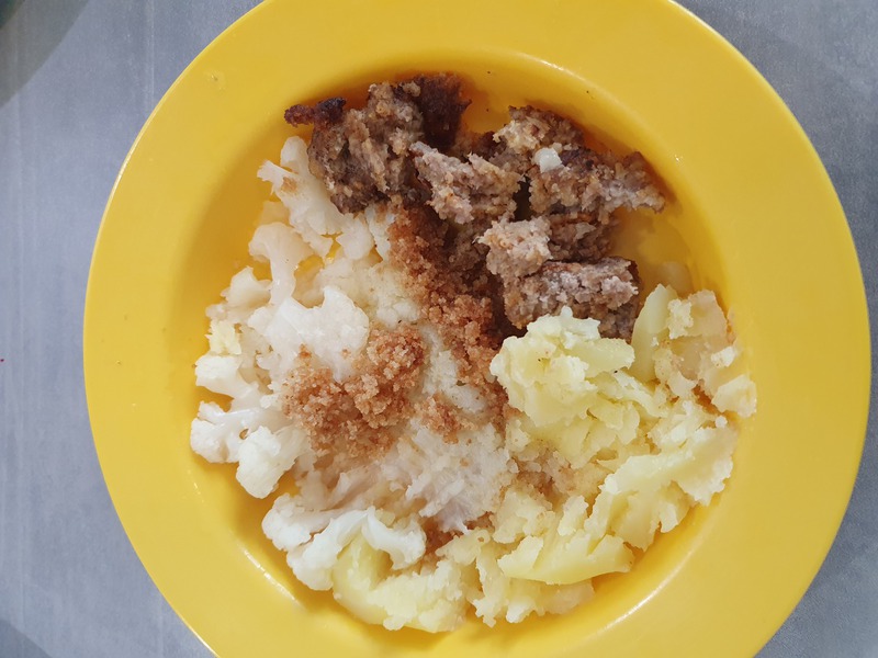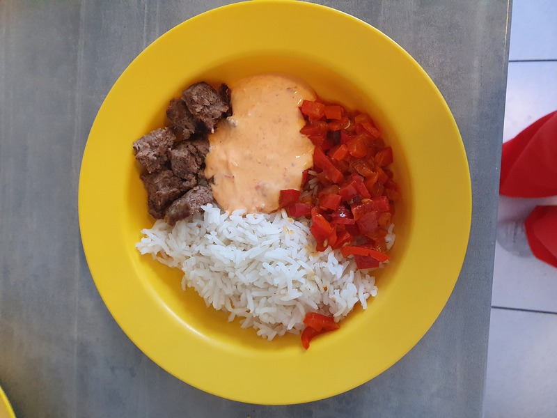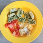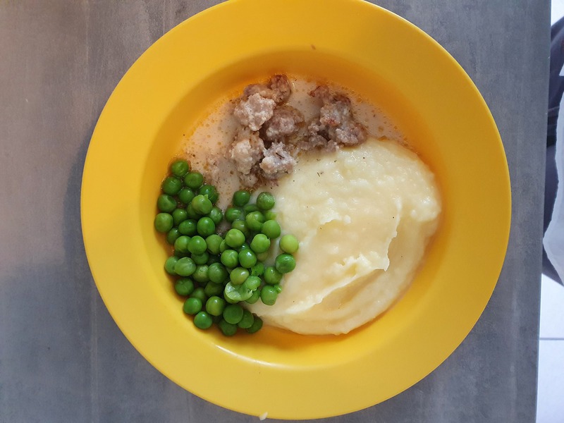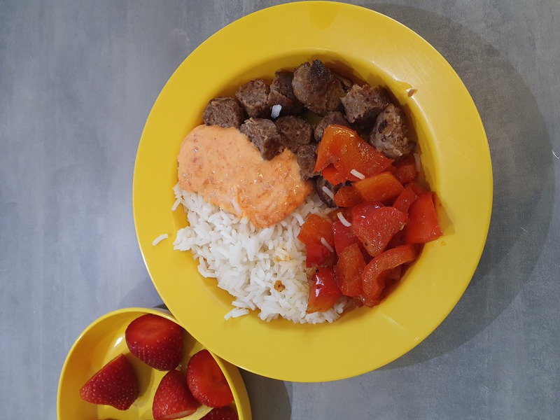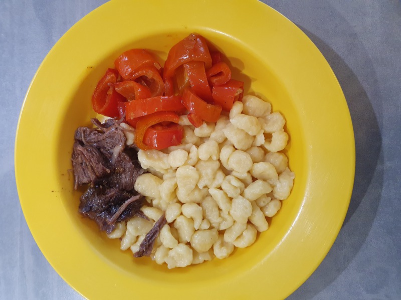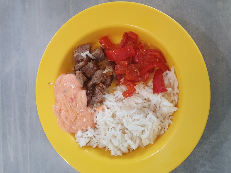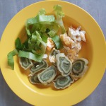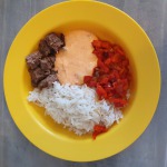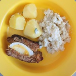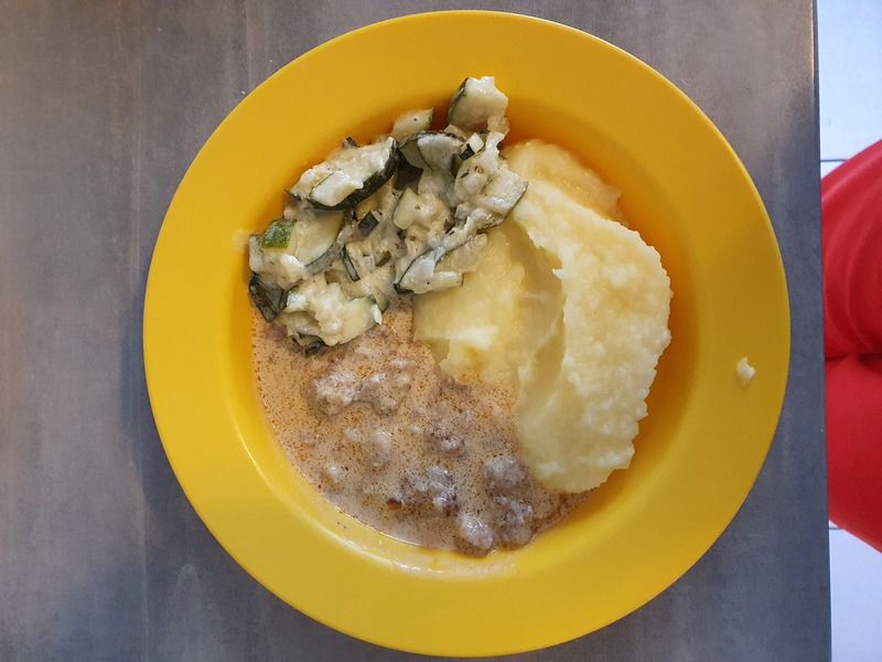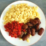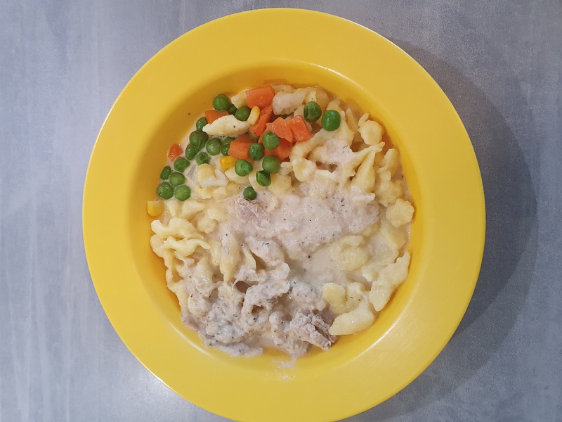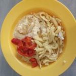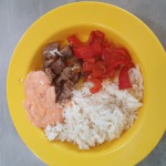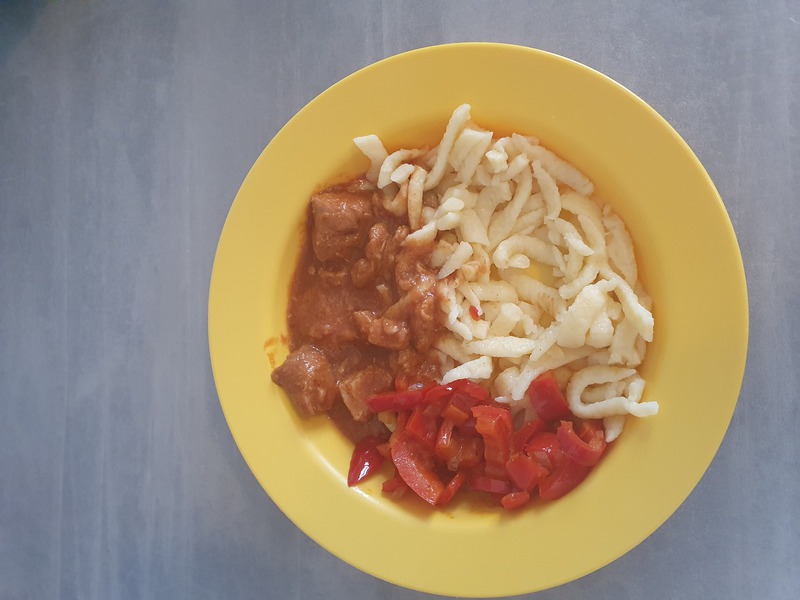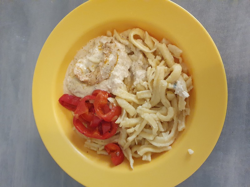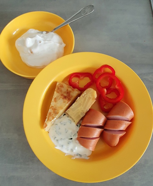 - mäßig mit tierischen Lebensmitteln ( Fleisch, Wurst, Fisch)