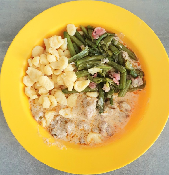 - reichlich mit Getränken, Wasser und pflanzlichen Nahrungsmitteln, wie Gemüse, Obst, Reis, Salat, Teigwaren,